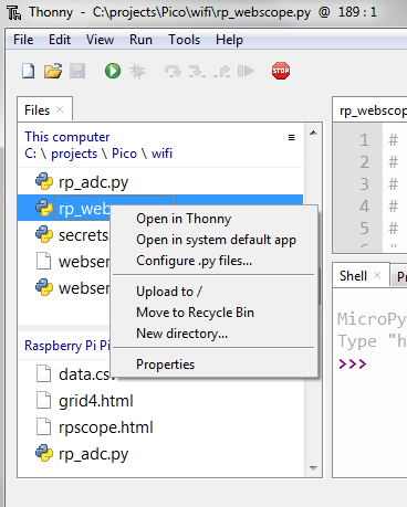 In part 2, I described how the analyser units return data in response to Web page requests; the status information is in the form of a JSON string, and the sample data is Base64 encoded. So each unit has a built-in Web server, and it is tempting to load the HTML display files onto them. However, I chose not to do that, for the following reasons: