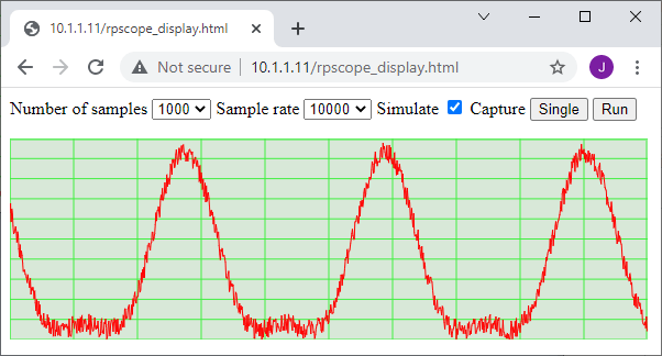 The waveforms are drawn as vectors (as opposed to bitmaps), so the display can be re-sized to suit any size of screen. There are two basic drawing methods that can be used: an HTML canvas, or SVG (Scalable Vector Graphics). After some experimentation, I adopted the former, as it seemed to be a more flexible solution; the canvas is just an area of the screen that responds to simple line- and text-drawing commands, for example to draw & label the display grid: